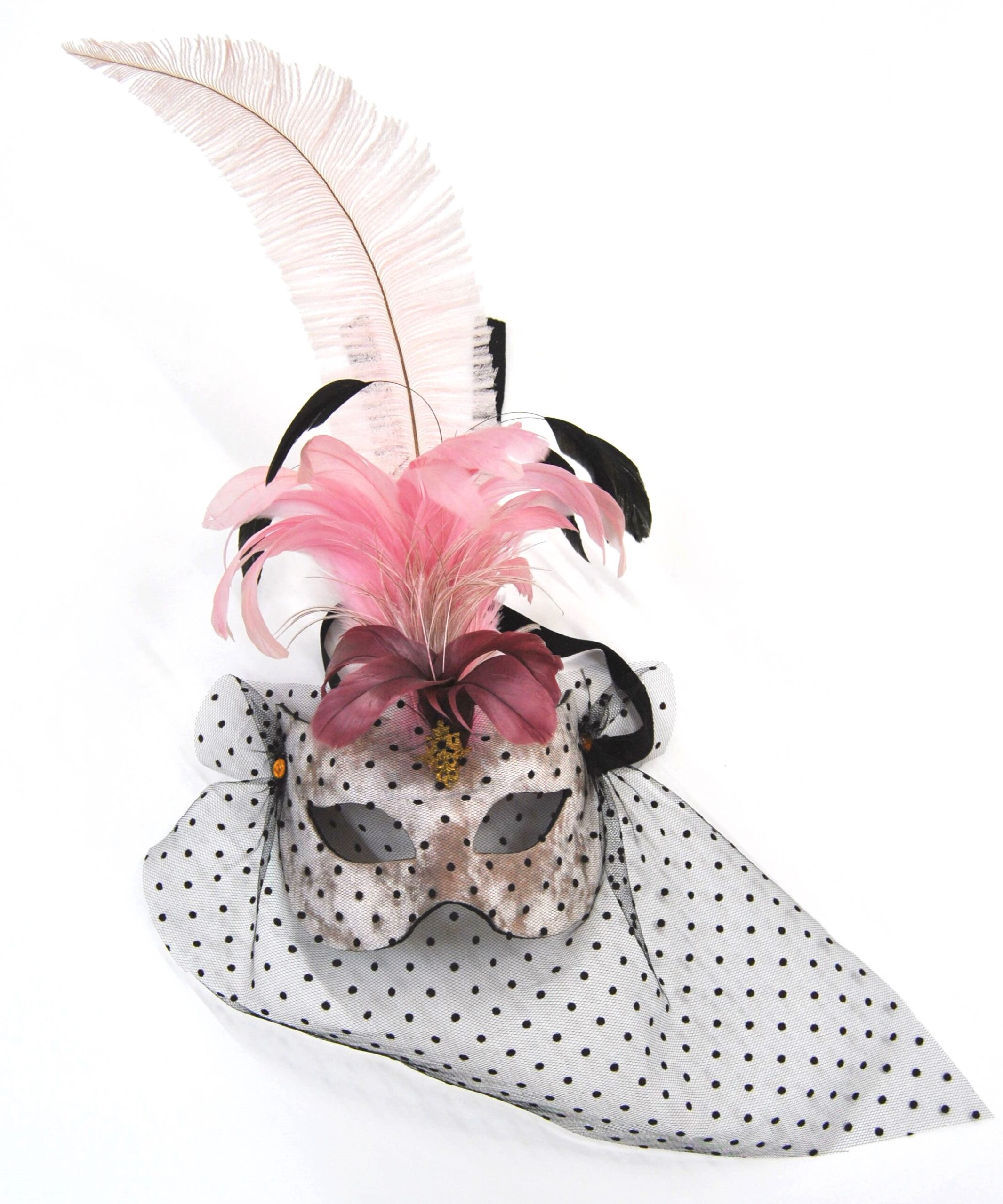 Antifaz veneciano producido artesanalmente. La máscara Colombina es una máscara de media cara que cubre principalmente los ojos, la nariz y la parte superior de las mejillas. La Colombina es un personaje de la Commedia dell’Arte italiana, que por lo general alterna el rol de sirvienta, con el de celestina.