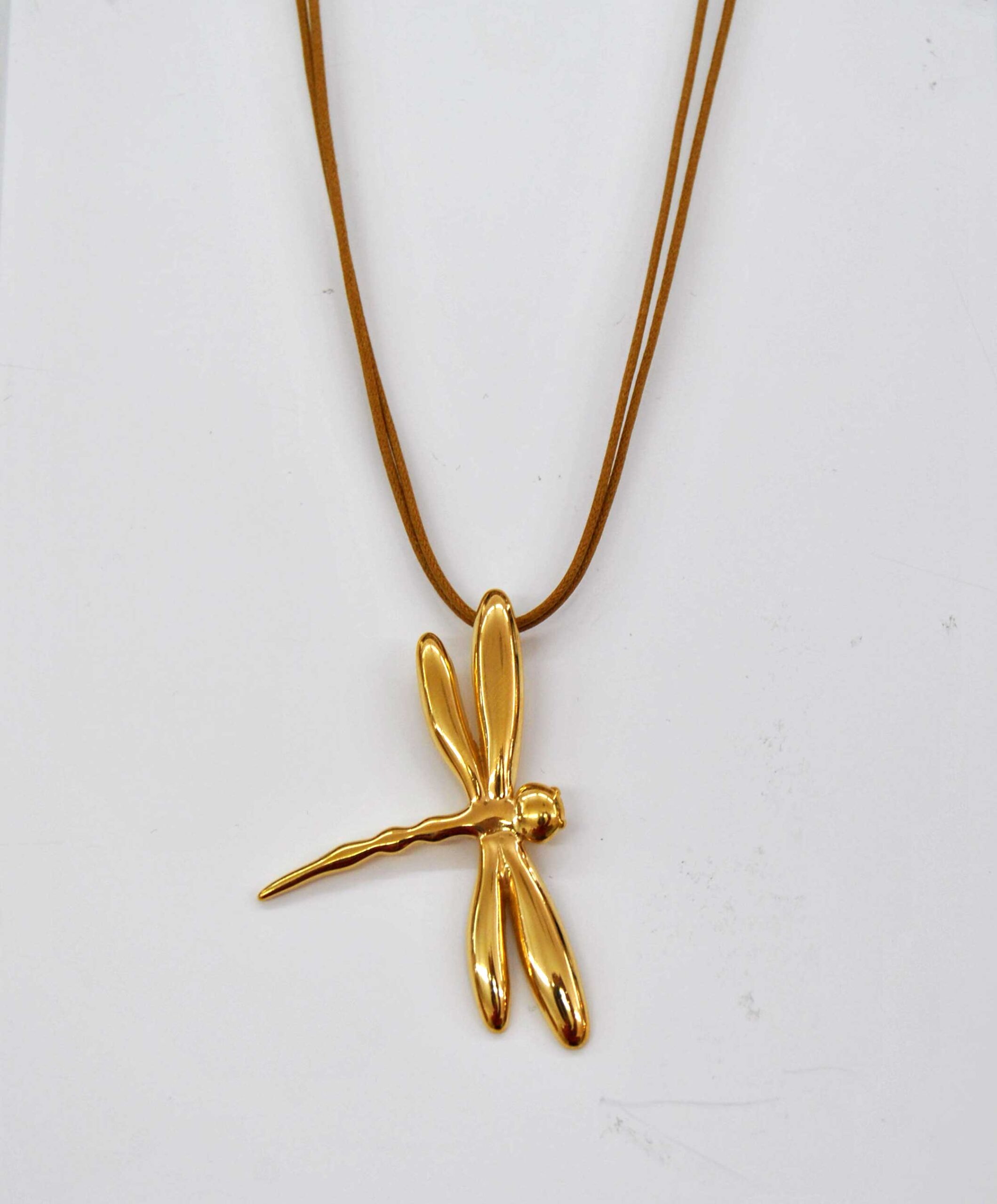 Libélula de plata de ley con baño de oro 5x4cm. / Cordón de 42cm.