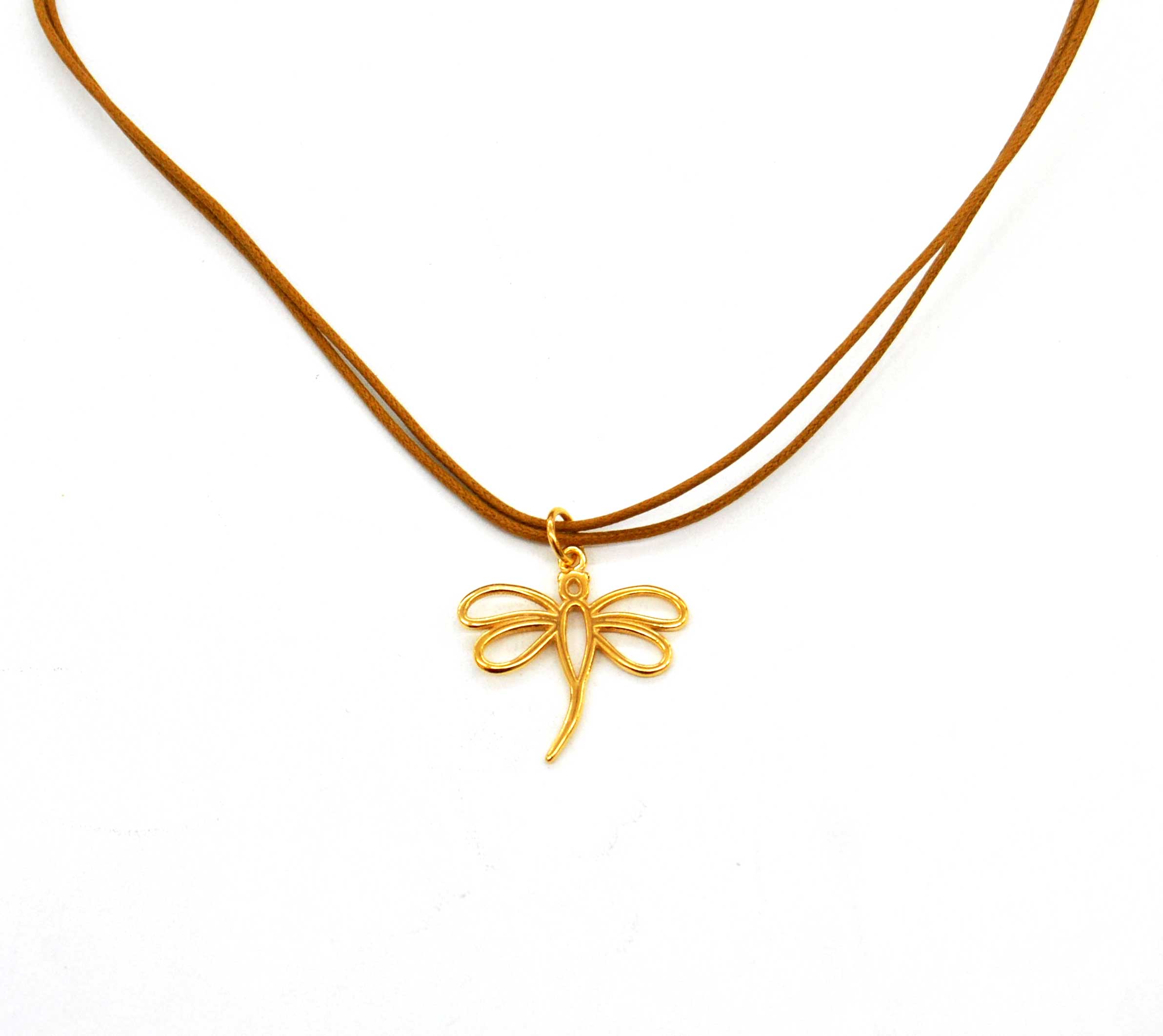 Libélula de plata de ley con baño de oro 2x3cm. / Cordón de 42cm.