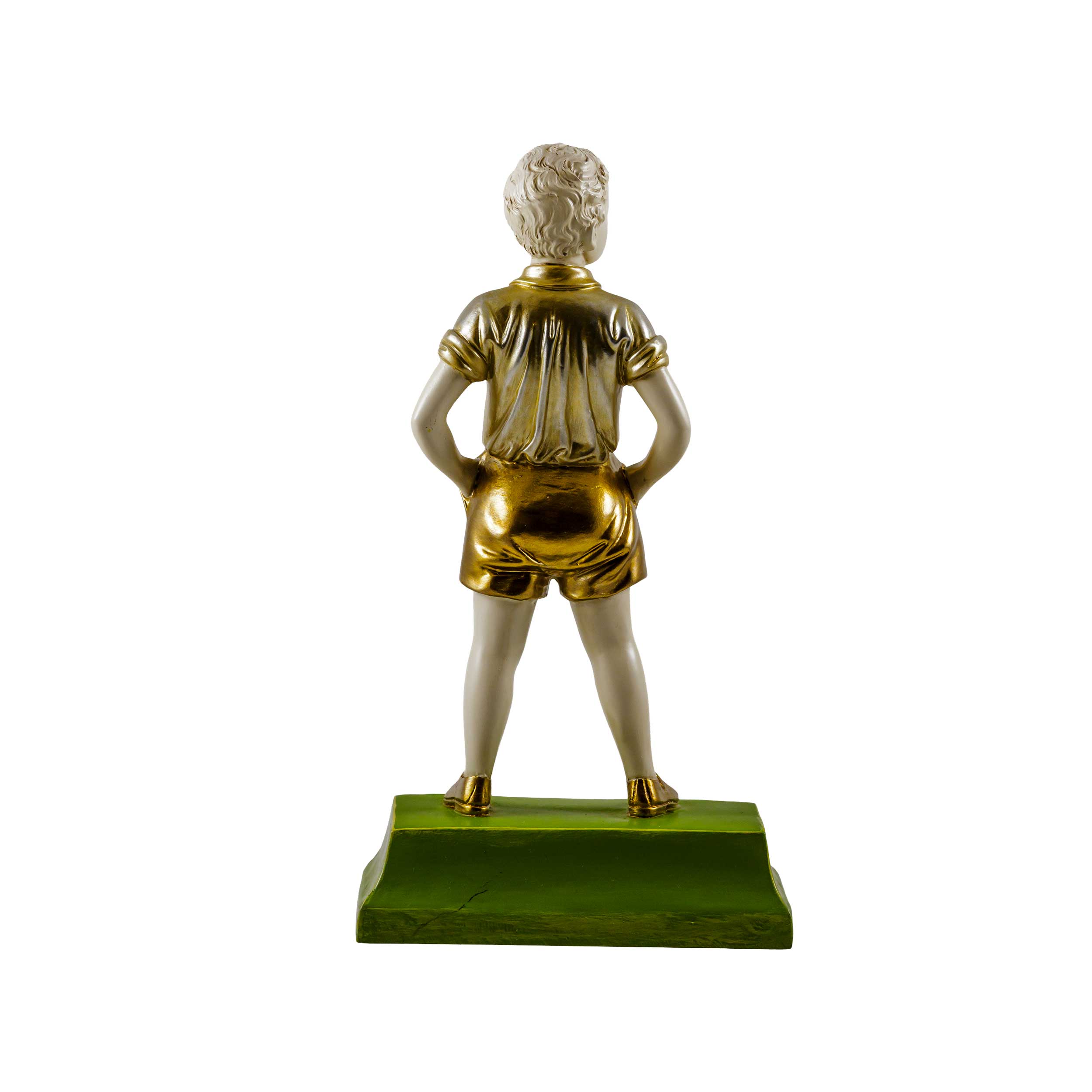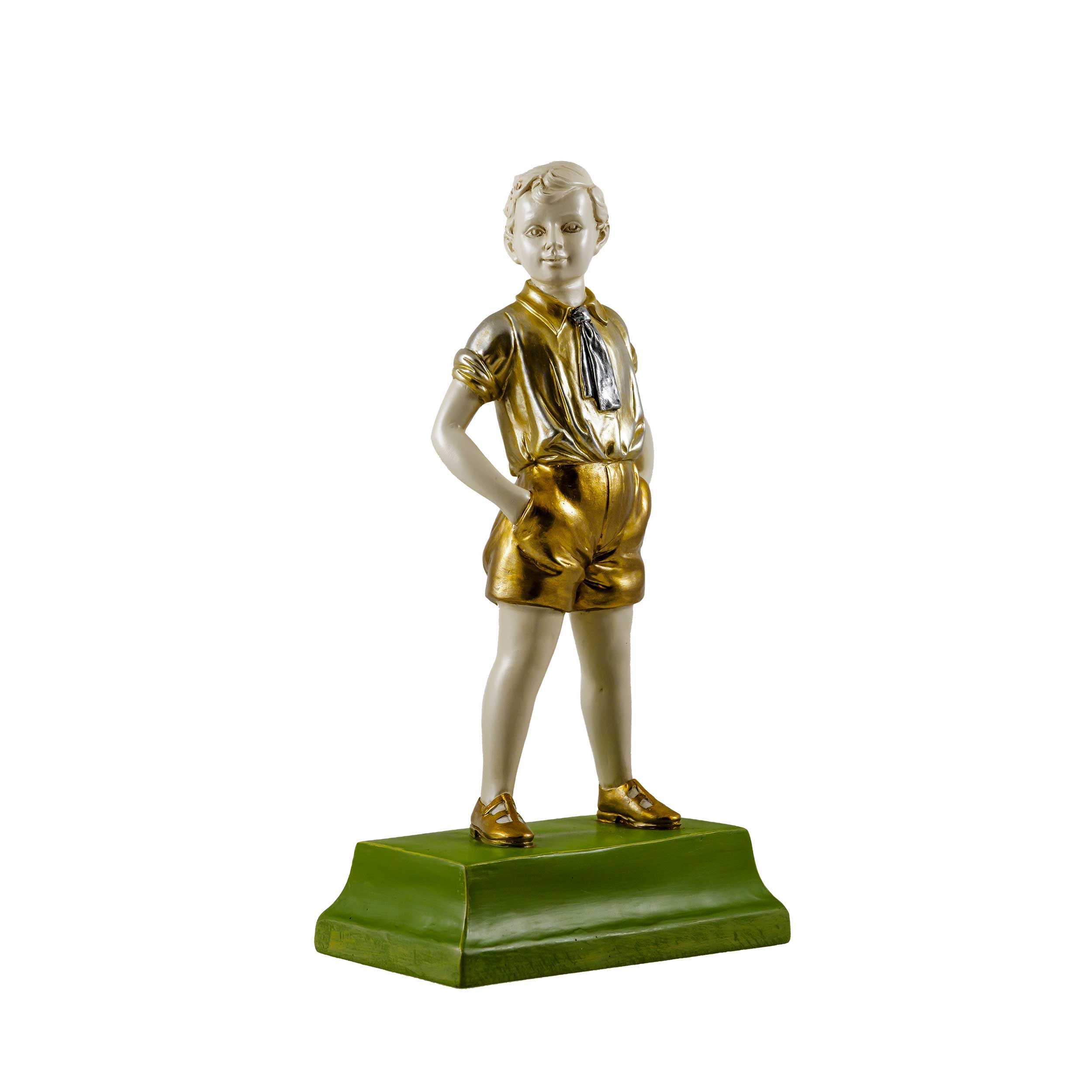 Se trata de una reproducción de resina del artista alemán Johann Philipp Ferdinand Preiss, sus obras, junto con las de Demetre H. Chiparus, se consideran la cumbre de la escultura Art Déco y son muy apreciadas por los coleccionistas modernos. La figura original dentro del Museo Casa Lis es de bronce, pintada en frío de un colegial sobre una base de ónice. Los brazos, las piernas y la cabeza son de marfil tallado de alta calidad.